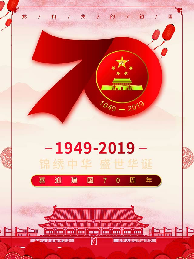 2019年10月1日祖國成立70周年,河北宏發(fā)機械有限公司全體成員祝福祖國的明天,天更藍(lán)、山更綠、水更清,經(jīng)濟(jì)更繁榮、人民更幸福、國力更強盛。