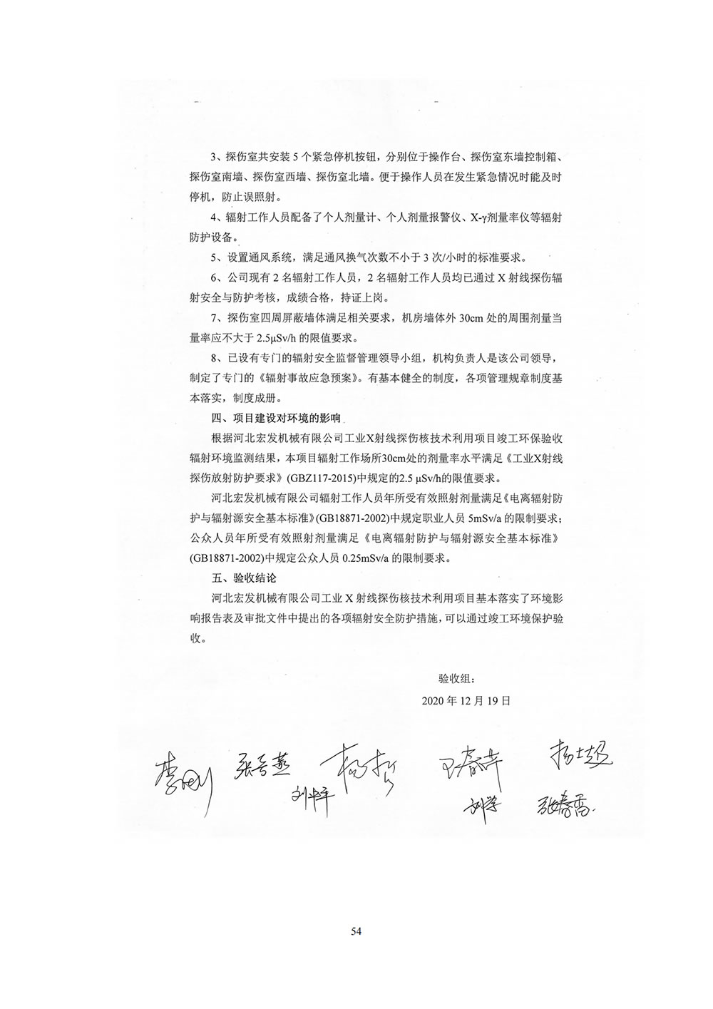 河北宏發(fā)機(jī)械工業(yè)X射線探傷核技術(shù)利用項(xiàng)目竣工驗(yàn)收監(jiān)測表